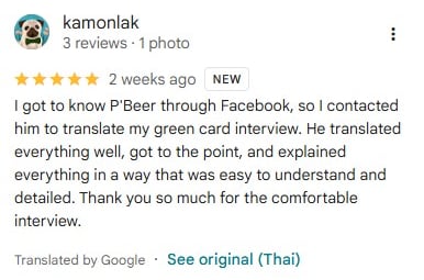 Immigration interpretation services in Thai and English, for USCIS green card interviews, immigration hearings, and immigration-related appointments.