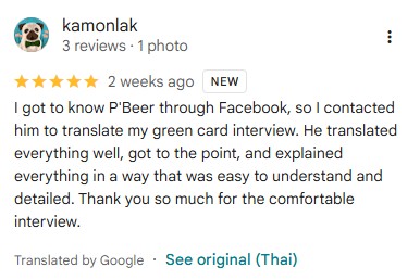 Immigration interpretation services in Thai and English, for USCIS green card interviews, immigration hearings, and immigration-related appointments.